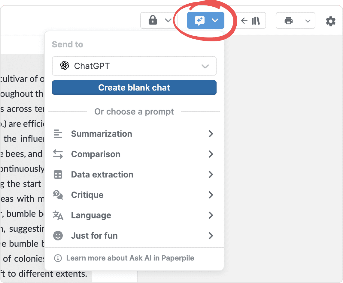 You can also add PDFs from within your AI assistant using the Paperpile button: