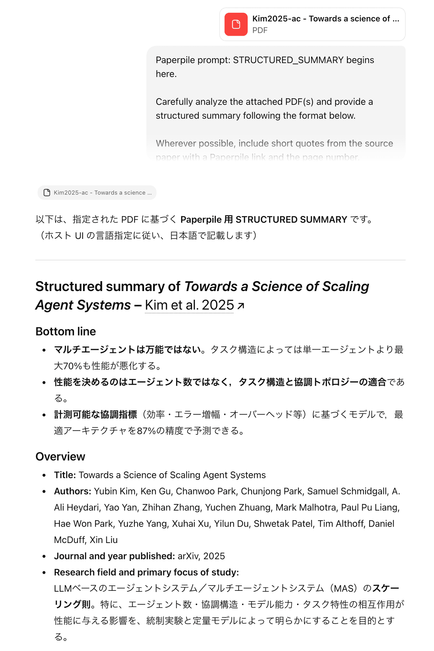 Paperpile encourages AI assistants to link back to your source PDFs in their responses. Look for links with author-year citations, citation keys, or page numbers in the AI's output.