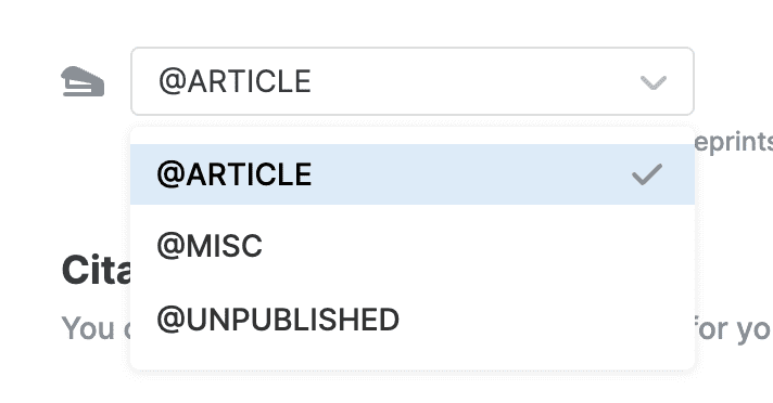 - Entry type for preprints: Choose the BibTeX entry type to use for preprints from a menu.