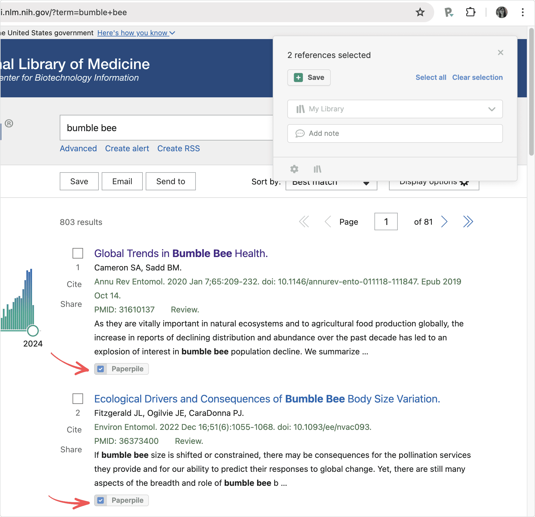 On many popular databases like Google Scholar, PubMed, or arXiv, you will see Paperpile buttons in the search results. Click these buttons to add the references and any associated PDFs to your library.