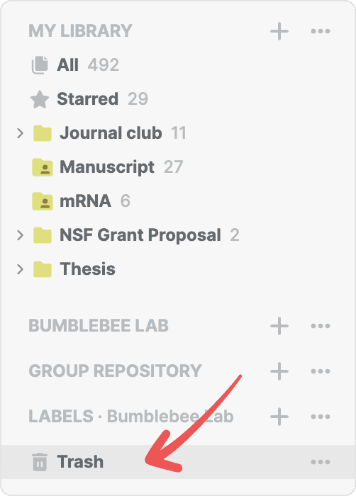 When you no longer need a reference in your library, you can move it to the Trash. References in the Trash can be restored at any time or permanently deleted to free up space in your library.
